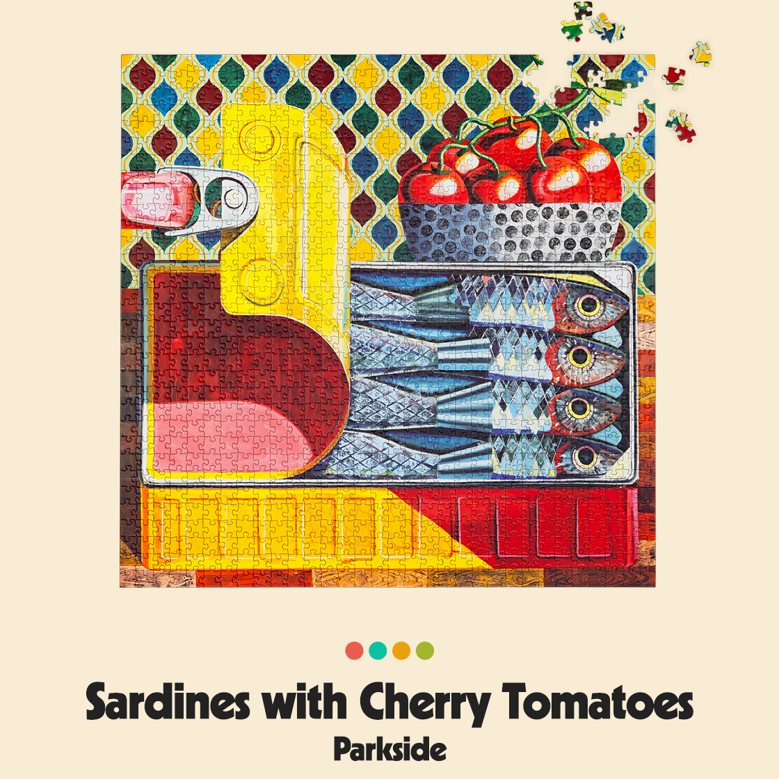 Enjoy Sardines with Cherry Tomatoes ($28) for Christmas, a relaxing 1000 piece puzzle from our friend Lindsay at Parkside.